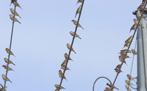 ![]() スズメが1羽混じってますね 過去の「野の鳥」表紙写真(オリジナル)は会報「野の鳥」のページに移しました |