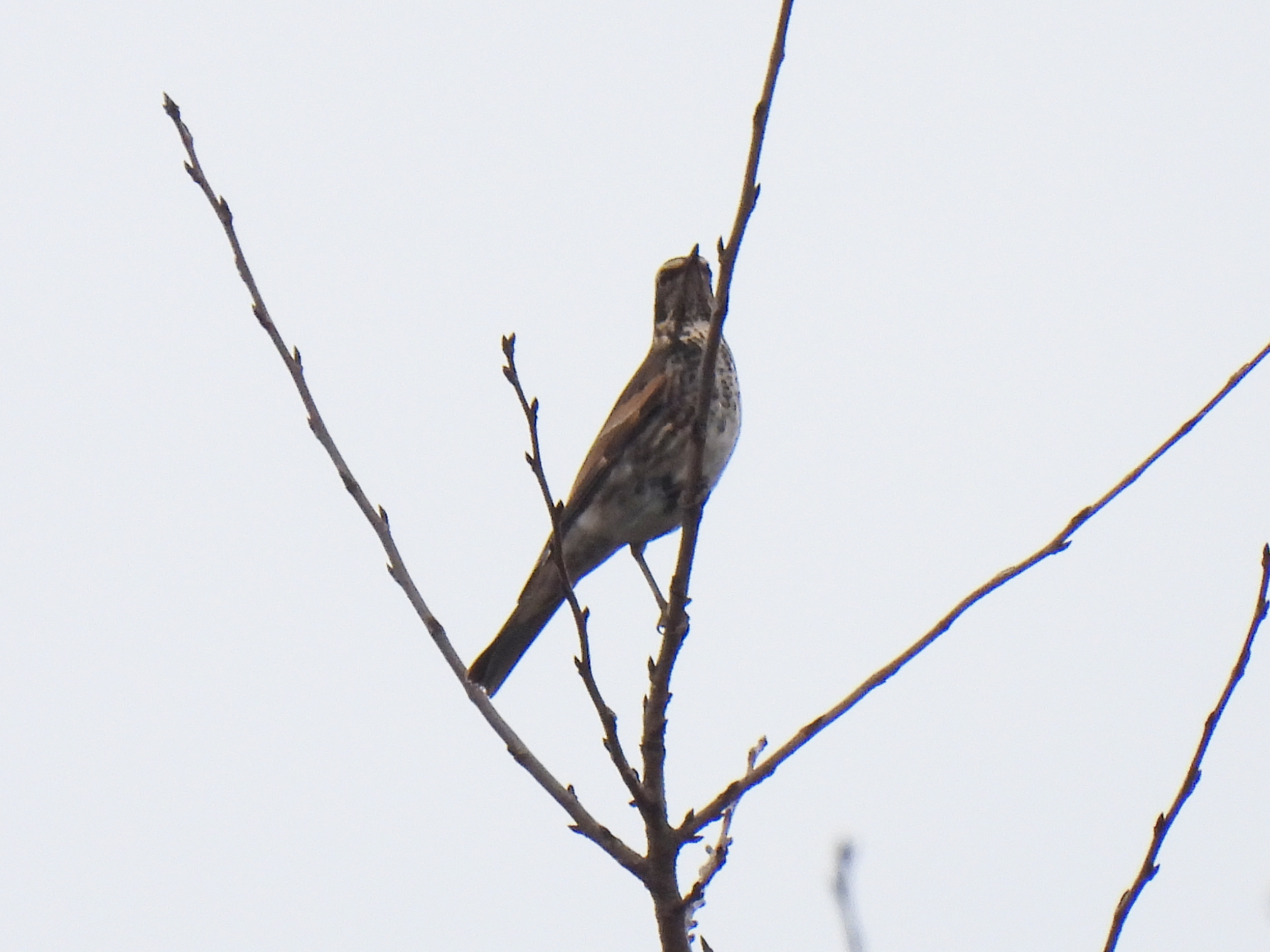 中山 誠司 | 早朝、もう葉を落としたソメイヨシノの梢付近で元気に鳴いていました。写真を撮ると、しっかりツグミでしたので、とても感激しました。 | |
