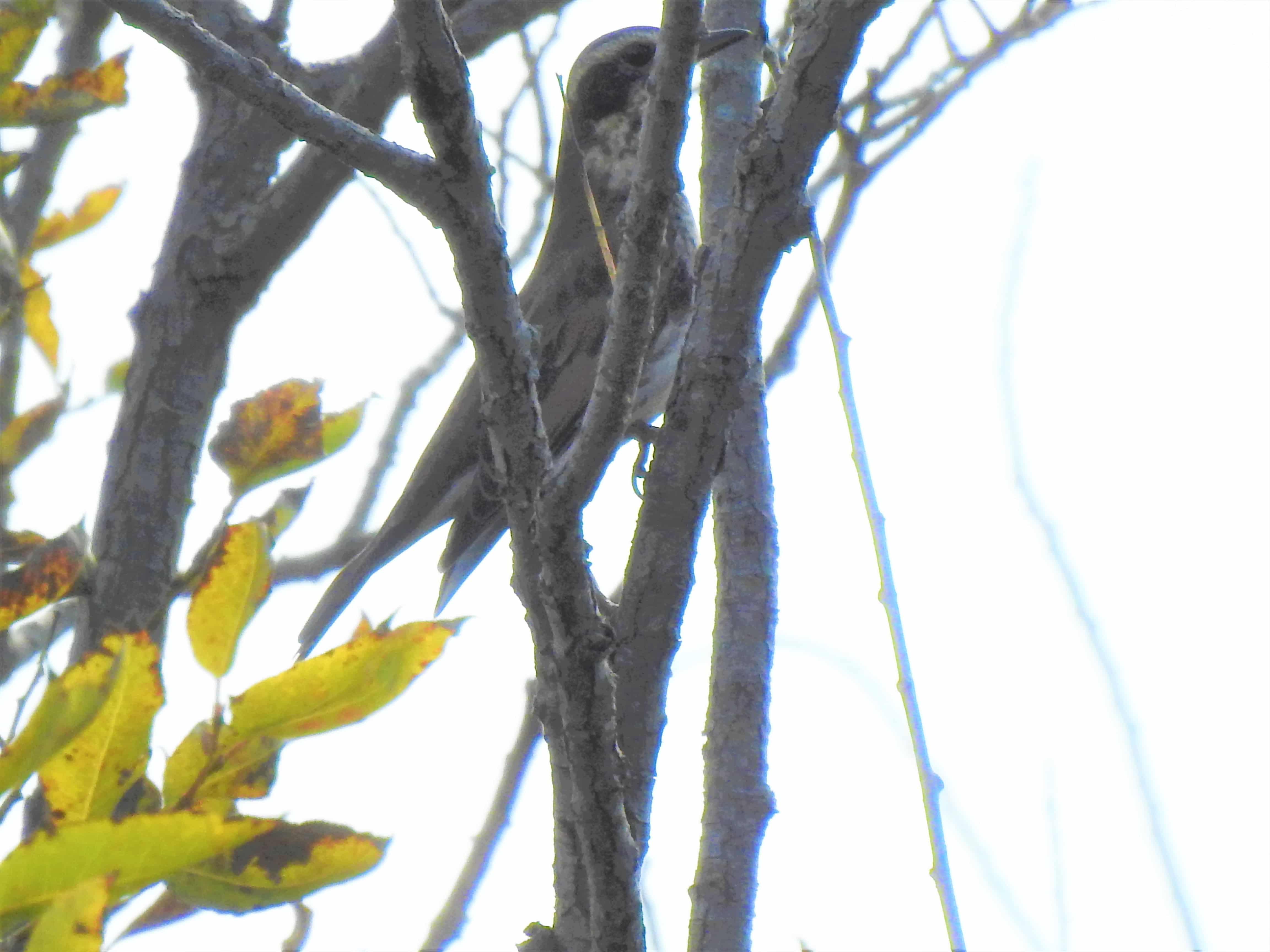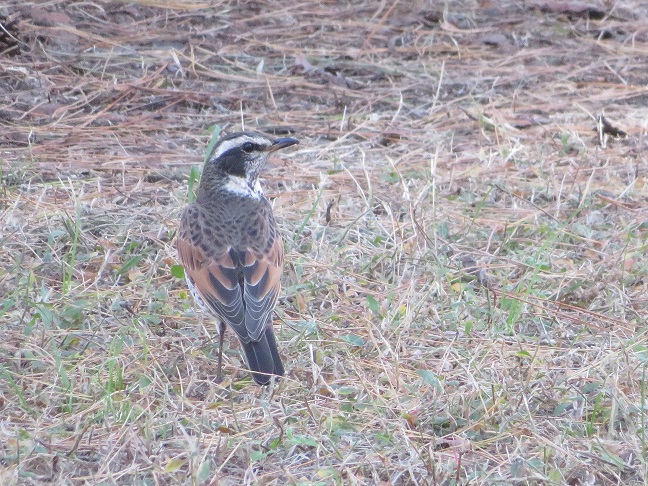 | 11月11日 | 15時30分 | 晴 | 前橋市敷島町水産試験場北側の池 | 江部 美鈴 | 池のカモを見ながら、周囲の木立にツグミの姿がないかと時折目をやると、にぎやかに動き回るヒヨドリから少し離れてじっと動かない1羽がいました。今年初のツグミでした。写真を撮るまもなくヒヨドリに追われ飛んで行ってしまいました。 | 会員 |